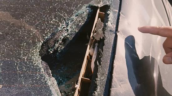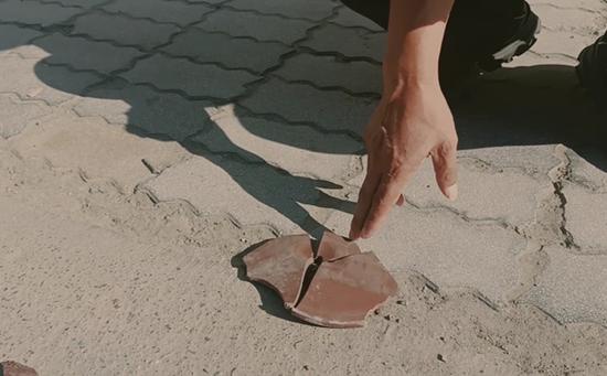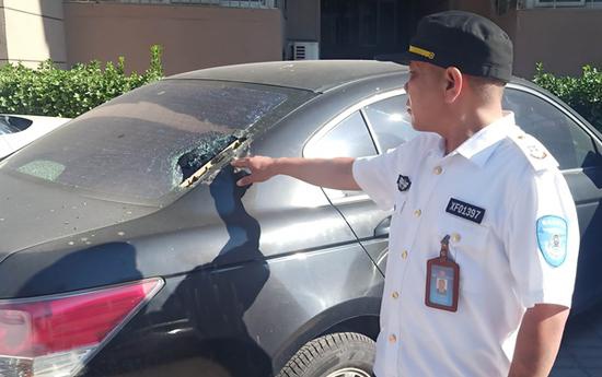 现场,经丰产路几名巡防员寻找查看发现,除去被砸穿后车窗的一辆黑色轿车外,不远处另有两辆轿车分别被飞溅的碎片击裂汽车前挡风玻璃和侧窗。队员随后,在距离受损车辆十来米的地面上,发现一块棕色、类似破裂的“砂锅盖”陶瓷片。队员们通过挪车电话很快通知了受损车主,并将情况向小区物业进行了反映。