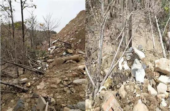 随意倾倒的建筑垃圾损毁林木