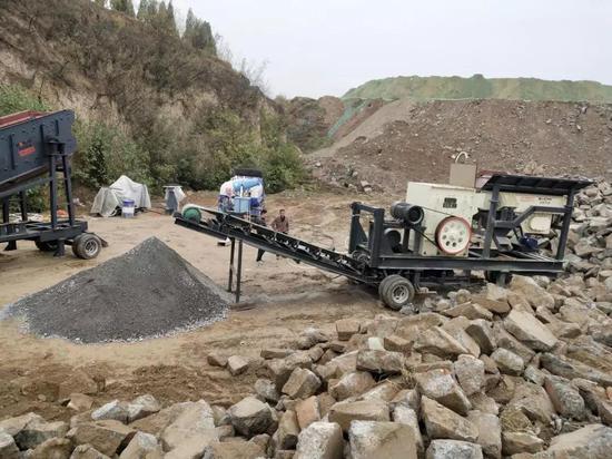 4.消纳场内建设有两条露天碎石生产线,无污染防治设施,无任何手续,有生产痕迹。