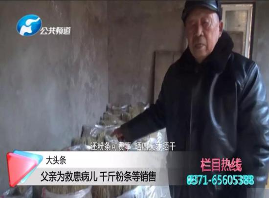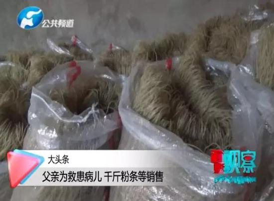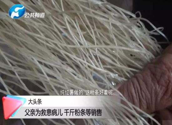 陈大爷称,自己家境不好,每年只有种数亩红薯来弥补家用,但是红薯收获季节并不畅销,于是家人商量一起在家把数万斤红薯磨成了粉,周围邻居得知家中缺少帮手,还时常帮忙相助。为了做出质量过硬的粉条,他每次都要跑到60多里外去做,他现在只希望这些粉条能有销路,给儿子筹得药费!
