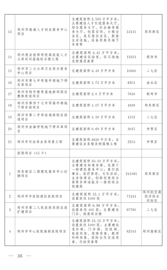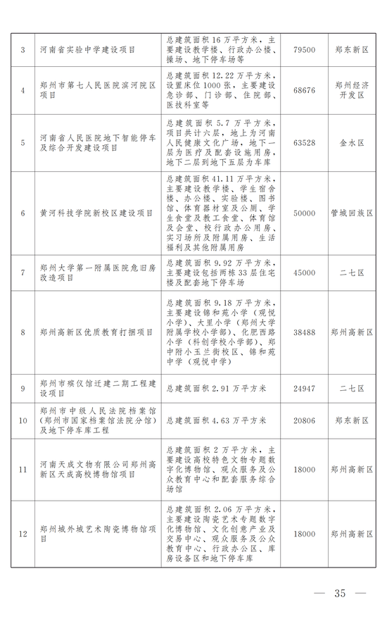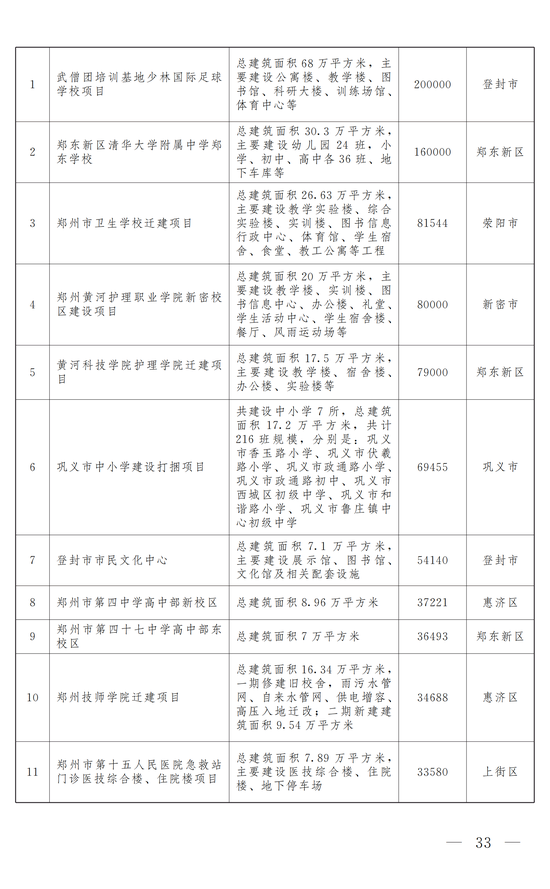 在民生项目方面,位于郑东新区的上海师范大学附属郑州滨沪学校建设项目拟开工建设,总建筑面积19万平方米,主要建设幼儿园、小学、初中、高中教学楼、行政办公楼、报告厅、体育馆、宿舍、地下停车场等。