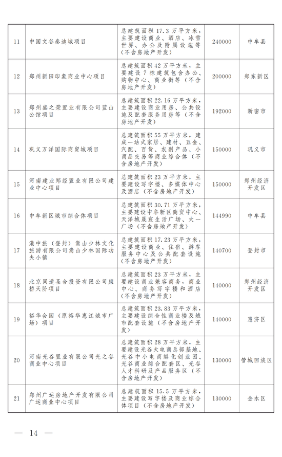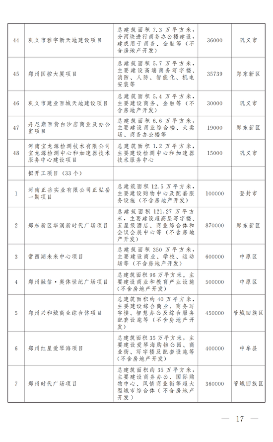 除此之外,备受关注的还有位于郑东新区的郑州新田印象商业中心项目,总建筑面积42万平方米,主要建设7栋建筑,包含办公、购物中心、商业街等 (不含房地产开发)。