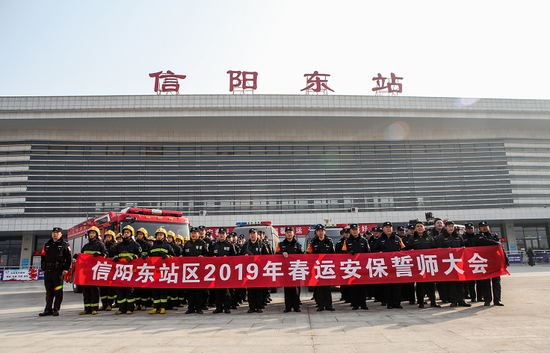 信阳车站为打好2019年春运攻坚战,全力实现“平安春运、有序春运、温馨春运,让旅客体验更美好”的春运工作目标,1月21日上午,在信阳站北站房和信阳东站广场分别举行了信阳地区2019年春运“当武铁先锋 做春运榜样”主题实践活动启动仪式和2019年春运安保誓师大会,旨在全面抓好安全、运输、秩序、服务等方面工作,确保旅客安全,提升服务质量。