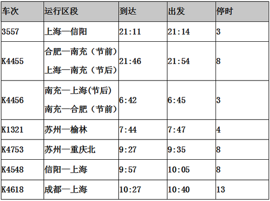 4.K3558次,信阳-上海,信阳站12:50开;