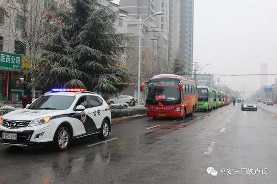 针对乘客滞留情况,卢氏县政府党组成员、公安局长宋福栓高度重视,要求交警大队迅速采取措施,将滞留乘客安全护送出境。交警大队大队长张晓东立即了解辖区道路积雪结冰、滞留乘客去向,亲自安排引导车辆和警力,指派副大队长韩勇具体负责,与交通部门、客运企业和周边县市公安交警部门联系沟通,确保将700多名滞留乘客安全护送出境。之后,韩勇迅速带领民警前往县汽车站,与客运企业负责人共同制定了安全护送方案,并组织对承担运送滞留乘客任务的23辆客车进行安全检查,督促驾驶人将客车全部加挂防滑链条,配备了必要的安全设施。临行前,韩勇与客运企业负责人联合召开23名客车驾驶人会议,向他们讲了客车运行途中的安全事项,要求根据沿途道路安全状况,适时采取措施,保持车距,谨慎驾驶,并与每个驾驶人签订了安全行车责任书。下午16时30分,23辆客车在警车引导下有序驶出卢氏县城,经209国道驶往灵宝和三门峡。车队行驶到王家河路段后,韩勇发现路面积雪越来越厚,道路通行条件下降,当即电话联系杜关中队安排民警查看路况,并增派一辆警车在车队后面护送。客车行驶途中,民警还几次下车检查客车运行情况,查看车辆防滑链条是否有松动和损坏现象,叮嘱驾驶人一定要注意行车安全。