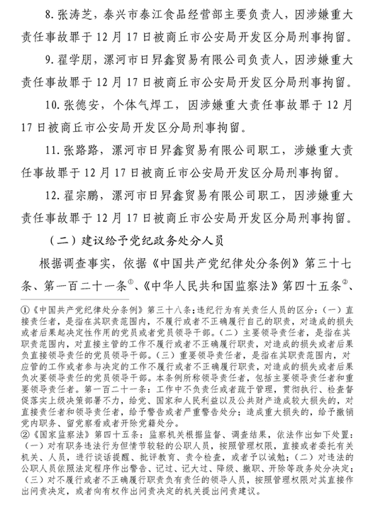 商丘市公安局开发区分局已对12名犯罪嫌疑人采取刑事拘留措施,其中施工人员3人,企业管理人员9人。