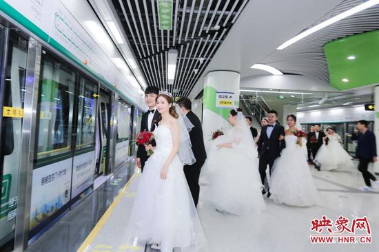 撒狗粮了!5月20日上午11时,“缘起地铁·情定终身”郑州地铁5号线集体婚礼在福塔广场圆满进行。20对新人乘坐“520爱情专列”前往幸福的婚姻殿堂。