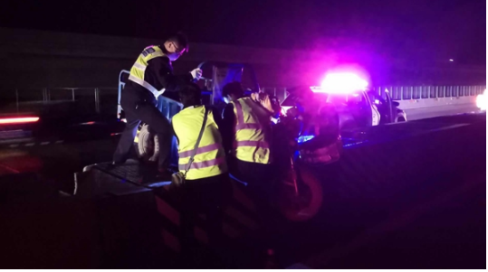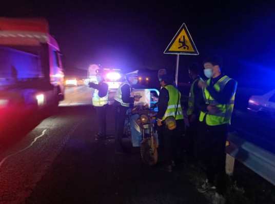 3月19日晚20时许,河南省高速交警总队十支队民警朱金标、辅警于海亮像往常一样驾车执行巡逻任务,行驶至连霍高速627公里处时,竟然发现第一车道内有位老人骑着电动三轮车正“风驰电掣”地迎面而来,速度快而且还是逆向行驶,过往车辆见此情形纷纷避让,现场车流如潮,能见度差,险象环生。民警不由得出了一身冷汗,立即开启警笛示警,一路喊话让老人停车,一边在后方引导车辆减速,一边将老人连人带车挪至应急车道并通知路政和抢险救援队进行援助。随后经过一番努力,将老人和车子顺利送达巩义东收费站下站。