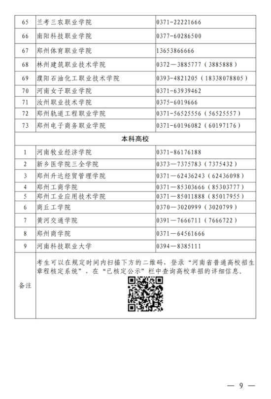 (二)考生查询。考生可通过登陆“河南省普通高校招生章程核定系统”(网址:)查询了解我省高职扩招政策和高校招生章程,也可通过高校官方网站或拨打高校招生咨询电话进行咨询,切勿通过非正规渠道查询了解高职扩招信息,以防被误导、上当受骗。