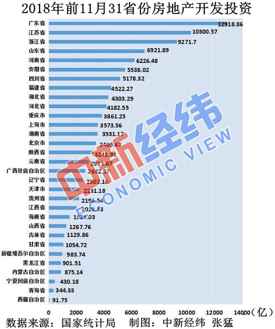 据国家统计局数据,2018年前11月,31省份房地产开发投资达110,083亿元,已超2017年全年投资额(109,799亿元)。