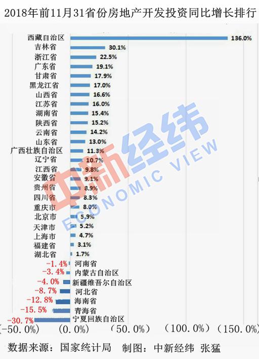梳理2018年前11月数据,宁夏房地产开发投资同比下降超30.7%,跌幅最大。青海、海南下降超10%,跌幅仅次于宁夏。易居研究院智库中心研究总监严跃进认为,有的地方实施去库存政策,导致房地产开发投资节奏放缓;有些地方市场行情好些,房地产开发投资数据就随之增长。体现了不同城市的特征。