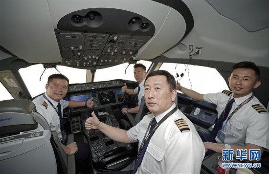 5月13日,执行试飞任务的厦门航空公司机组人员在驾驶舱合影。 新华社记者 才扬 摄