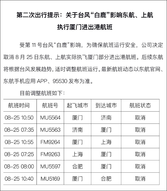 东航连夜发布出行提示,多个航班取消 @东方航空