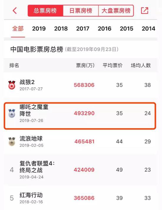 时间财经查阅猫眼数据显示,截至9月24日发稿,《哪吒之魔童降世》票房已达49.33亿元,位居中国电影票房榜总榜第二。