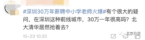 9月11日,深圳中学启动了2020届教师招聘,待遇中提及,解决深圳市户口和事业编制、强力措施保障并帮助教师解决住房。有评论称,考虑到几十万的年薪以及老师的寒暑假等,这是一份待遇超过多数清北毕业生的工作了。