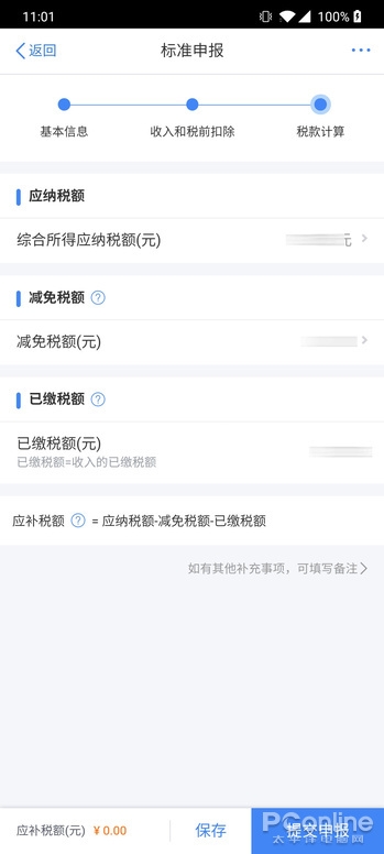 到了这里,个人所得税APP就会自动帮你计算出需要减税或者补税多少了,点击“提交申请”即可。