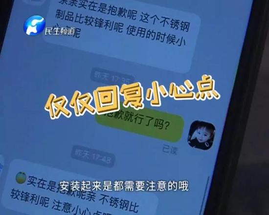 随后,她把受伤图片发给店铺客服,店铺客服却只是回复:“亲亲,这个不锈钢制品比较锋利,使用的时候要小心”,再没有其他任何回应!