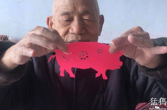上午10时许,老先生正坐在沙发上修剪着一副即将完工的“兔子”作品,这是12生肖里的其中一个作品,这副作品还不算太难,最难的就是这副由“风来花枝舞春如鸟能言”10个字组成“老翁骑驴”剪纸画,刀工细腻栩栩如生。记者现场看到,白老先生茶桌上还摆着不少象形字剪纸画,其中一副会跳舞的小女孩剪成的舞字也十分惊艳,还有马到成功、公鸡打鸣等剪纸画作品。2019年是猪年,昨天晚上自己新剪了个发财猪,祝福大家猪年发大财。