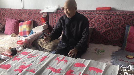 2019年1月21日,位于郑州市工人路26号院白由祥老先生的家里摆满了老人最新创作的十二生肖和象形字等剪纸作品。别具创意的剪纸,是老人花费不少时间苦思钻研剪制而成的,且这些剪纸艺术只要别人喜欢都可以免费带走。