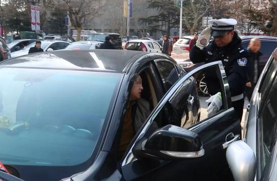 在等待增援过程中,该名男子欲驾车驶离现场,副大队长窦斌、四中队长韩伟将其拦下要求该男子出示驾驶证等相关证件,但该男子称其不是驾驶员,拒不配合,并锁住车门。