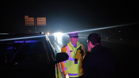 雨夜,河南一对夫妻因琐事吵架后,在高速公路应急车道违停。本文图片 周口市公安局交通管理支队高速七大队