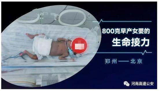 12月13日,郑州一800克早产儿感染罕见病菌,病情危急,急需转院北京。中华少年儿童慈善救助基金会9958爱心团队经多方协调,联系到专业医疗转运车为患儿提供运输服务。当天13时许,河南省公安厅高速交警总队接到求助后,迅速通报部署沿线的高速交警二支队、八支队、三支队、九支队、四支队高速交警警车开道接力护送,为生命保通。
