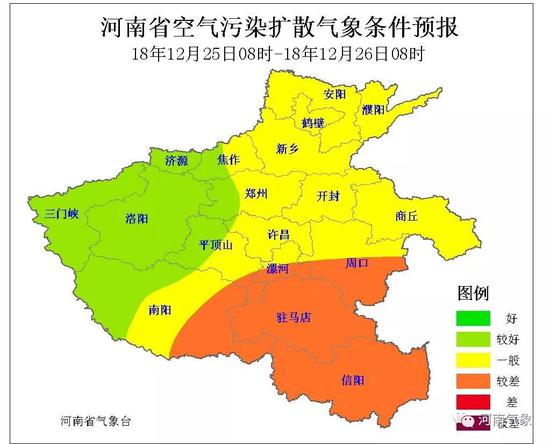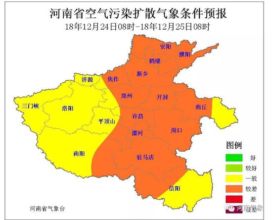 24日-25日上午,我省处在均压场里,风力小,空气污染扩散气象条件一般到较差(3~4级), 全省大部地区有轻到中度霾