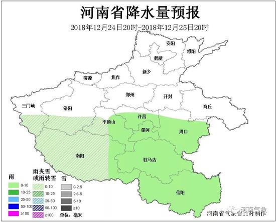 今天,全省阴天,南阳、信阳、驻马店、漯河四地区和三门峡、洛阳、平顶山、许昌、周口、商丘六地区南部部分地区转零星小雨或小雨,其中西部山区有雨夹雪或小雪。