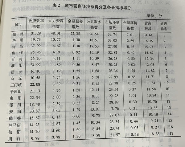 【营商环境:整体水平欠佳,郑州、洛阳、许昌营商环境水平相对较高】